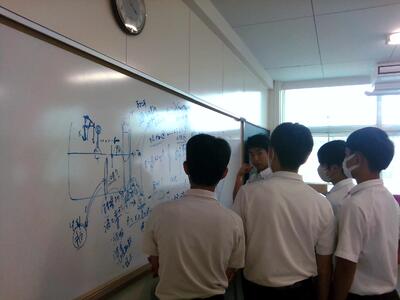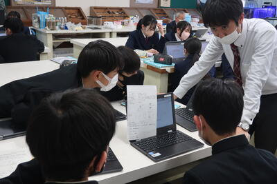 7限目にはASⅢのメンバーも加わり、地学室もますます活気づいてきました。ASⅢで行っている「魚糞」の継続研究を考えている班が先輩に助言をもらったり、「電磁誘導班」が物理室で活動している「波力発電班」の先輩に報告書を見てもらったりしています。みんなラストスパートがんばってください!