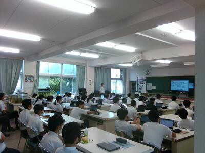 黙々と個人で取り組むクラス、担任の先生が生徒と対話してアイデアを引き出すクラス、友人と去年の研究などについて意見交換するクラスなど、クラスによって取り組み方は色々ですが、それぞれが天草の課題解決のための1歩を踏み出しました。中には、昨年取り組んだ研究を継続しようと考えている生徒もいるようです。自分の興味・関心のある分野で、天草に貢献できる研究ができるといいですね。みんなの想像力や実行力に期待しています!