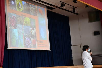 6限目は「天草の生物多様性」というテーマで、九州大学理学部准教授の新垣 誠司様に講義いただきました。「変化に富んだ熊本の海が場所の多様性を生み、生物多様性に繋がっている」というお話を聞き、天草の海の魅力の要因を知ることができました。また、比較研究の対象には注意が必要であることなど、今後の研究上の注意点もわかりやすくお話しくださいました。
