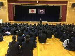 初めに、平田校長及び菅副校長(団長)から、修学旅行で学んでほしいことといった話がありました。