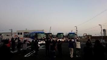 その後、6台のバスに乗り込み、熊本空港に向けて出発しました。天草高校から1年生修学旅行団が出発しました。