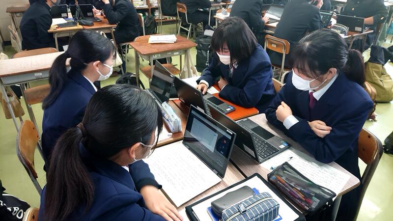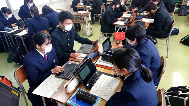 御船高校と水俣高校の先生方が一人一台端末の授業見学に来られました!