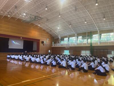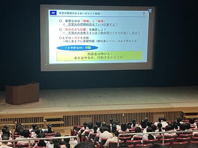 期末考査が終わり、ほっとしている人も多いと思いますが、せっかくついた学習習慣を手放すのか、継続してステップアップするのかはみなさん次第です。今回の進路講演会が、一人ひとりが夢実現のために今何をすべきか、しっかり考える機会となっていますように。