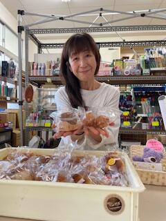 岡部さんが愛でた花たちも変わらず元気です            学校売店の新たな顔、濱浦さんおすすめの一品