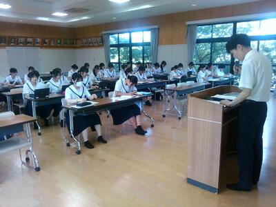 総体・総文祭が終わり、明日からは夕課外が始まります。学年主任の山口先生より、総体・総文祭を終えて労いの言葉と、進路目標の実現に向けてこれからすべきことの話がありました。部活動が一段落した生徒が多く、ここから気持ちを切り替えて頑張ろうという気持ちを皆で新たにしました。