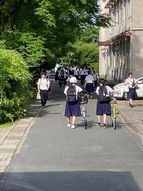 26日から始まる期末考査前1週間となり部活動も中止です。終礼が終わって家路を急ぐ天高生。3年生も夕課外がなく、重要な期末考査に向けて頑張るでしょう。下級生も1学期の総決算です。充実した時間を過ごしましょう。