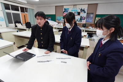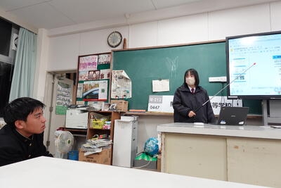 令和7年1月20日(月)市議会教育厚生委員会との意見交換会に ATⅠ全35班の中から3班の生徒が出席しました。