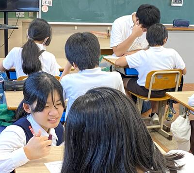 多くの活動を含む授業でしたが、テンポよく進み、1時間があっという間でした。どの活動においても、生徒たちが、間違いを恐れることなく笑顔でコミュニケーションをとっている姿がとても印象的でした。
