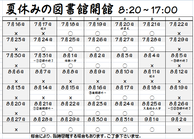 夏休みの図書館開館