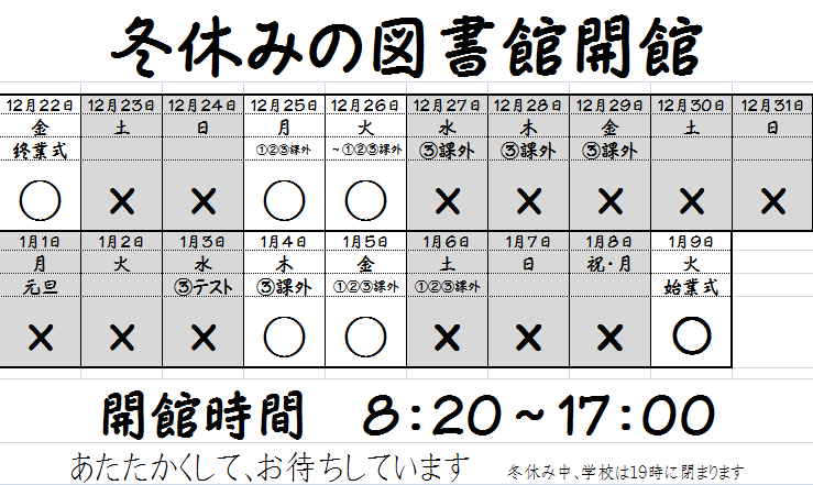 冬休みの図書館