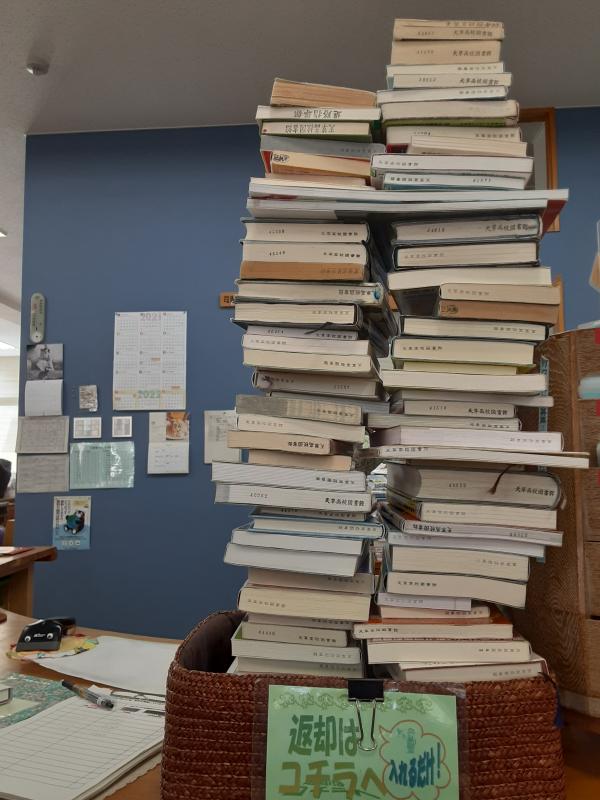 卒業式当日の返却本を積んでみたところ、高さ1mを超えました!
