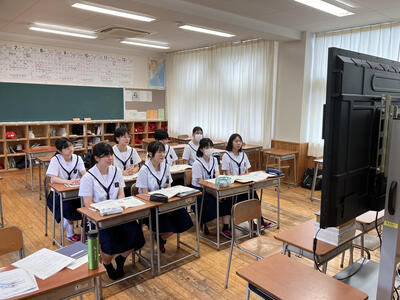 本日7/8(月)牛深東中学校にて学校説明を行いました。