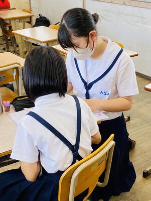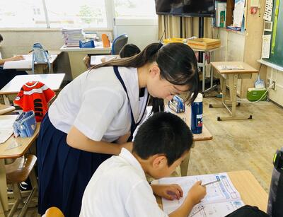 44名の天高生が3、4、5、6年生の夏休みの宿題のお手伝いをしました。