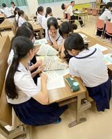 進路実績や天草高校の特色、SSHの活動や国際交流事業について説明を行いました。