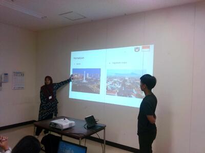 At first, the five university exchange students made presentations about themselves, their countries, and what they majored in. After that, everyone divided into five gruops where the participating students introduced themselves to their group members.