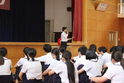 牛深東中学校の皆さん、集中して話を聞いて頂きありがとうございました。