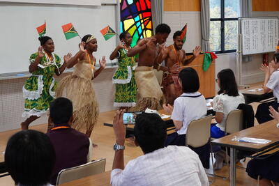 そんなあなたにピッタリの機会をご用意しました! 天草にいながら、ドイツ語の歌をドイツの若者と歌ったり、インド映画でしか見たことがなかった、思わず踊りたくなる生歌を聞いたり。南国のカラフルな民族衣装を身にまとったバヌ アツの高校生と恋バナをしたり(!?)。