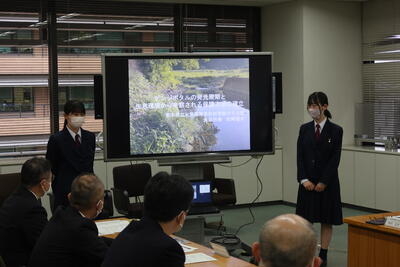 科学部ホタル班の2人が、県教育委員会の白石教育長を表敬訪問しました。