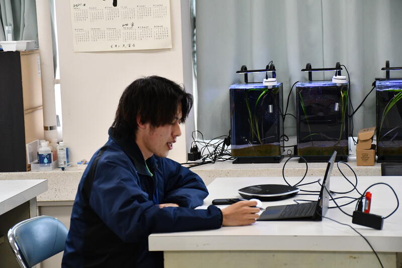 Another group “Sphenoceranus,” where students are studying a kind of clams that lived during the Cretaceous period, is planning their study trip to Goshonoira, which is known as “Fossil Island.” There is a place, so-called “The Wall of Sphenoceranus,” which has thousands of fossils, since it used to be at the bottom of the ocean. Heeding advice from a teacher, they are trying to make more detailed plans, and deciding what kind of data they should collect.