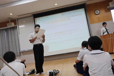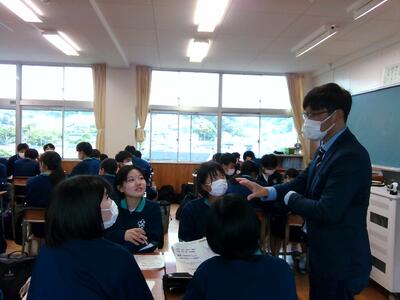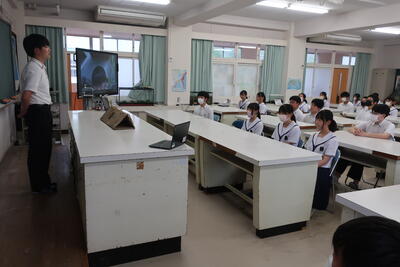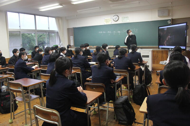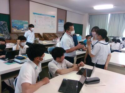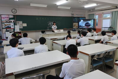 6限目は天草市役所水産振興課の方から「天草の漁業について」、7限目は文化課の方から「世界遺産の崎津集落について」のお話をいただきました。最後の質疑・応答でも活発に質問する姿が見られました。地域の歴史や課題を知り、今後の探究活動に繋げてほしいです。