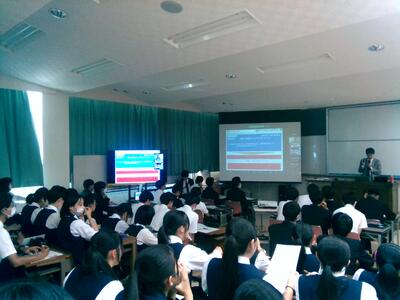 生徒はメモを取りながら、熱心に耳を傾けていました。