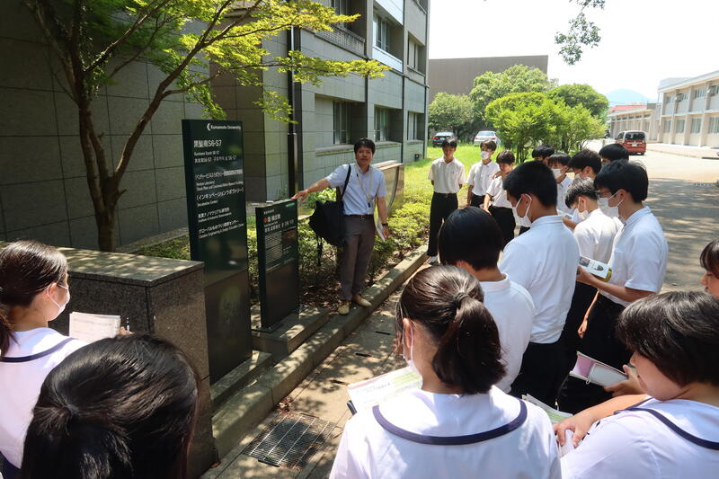 生徒たちは、事前に行った希望調査をもとに文・法・教育・熊本創生推進機構・理・工・医・薬・合津マリンステーションのそれぞれの場所に分かれ、熊本大学で行われている最新の研究や、研究手法に触れてきました。