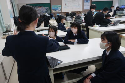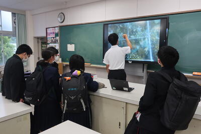 6限目は天草市役所水産振興課の方から「天草の漁業について」、7限目は文化課の方から「世界遺産の崎津集落について」のお話をいただきました。最後の質疑・応答でも活発に質問する姿が見られました。地域の歴史や課題を知り、今後の探究活動に繋げてほしいです。