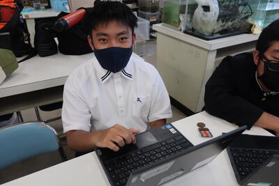また、7限目には、情報社会の次に来ると言われているSociety5.0について、情報科の藤岡先生による講義がありました。ICTを活用した全教室一斉講義が行われ、動画やスライドを確認しながら学んでいきました。