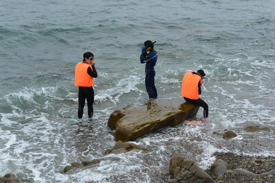 海水温が低いために中断していた牛深の砂月海岸での調査を再開しました。