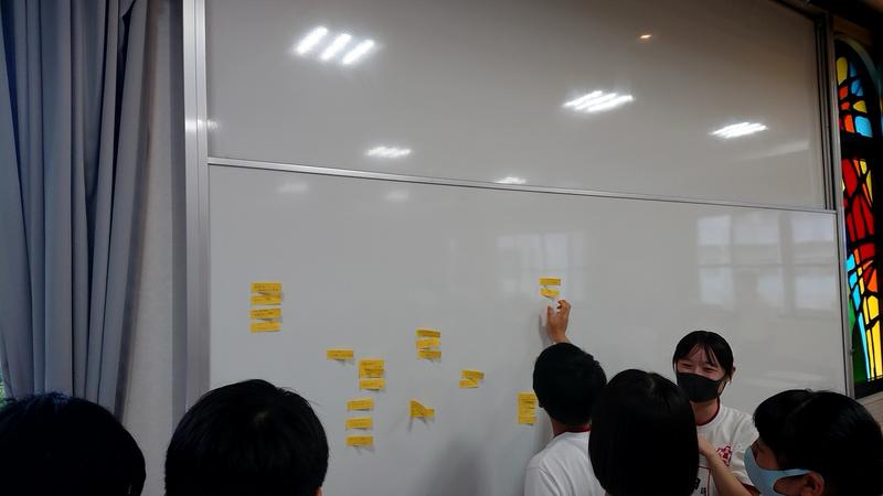 その後、ホワイトボードに付箋を貼り、同じ研究テーマの人とのグループ編成を終えました。