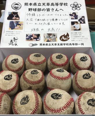 【野球部】天草支援学校高等部の皆さんにボールを修繕していただきました!