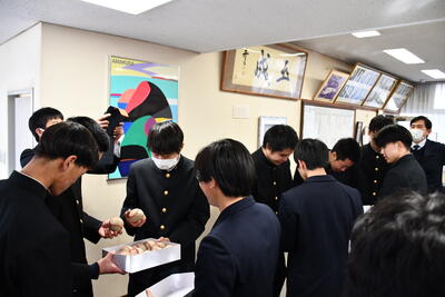 2月16日(金)に、天草支援学校高等部の皆さんに依頼をしていた野球部のボールの修繕が済んだとのことで、本校校長室にて修繕したボールを贈呈していただきました。