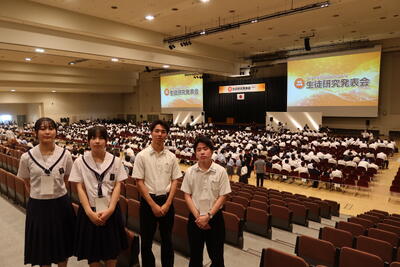 明日からのSSH生徒研究発表会に向けて、代表生徒4名が本日出発しました。