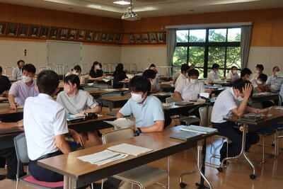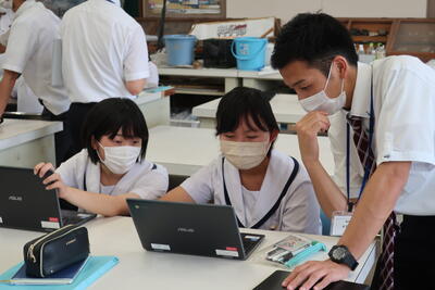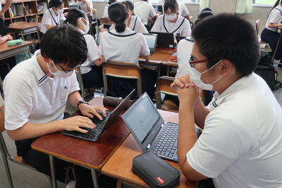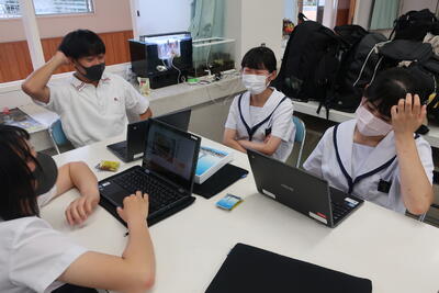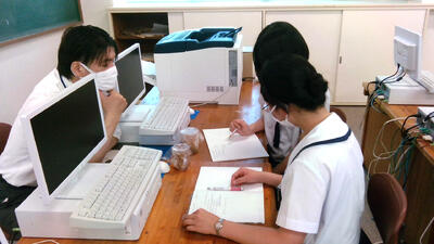 8月3,4日に行われるSSH生徒研究発表会での発表に向けて、学校代表の3人が練習をしていました。