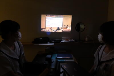 会では発表の様子を録画したビデオを見ながら、発表での話し方や発表資料について改善点を考えます。