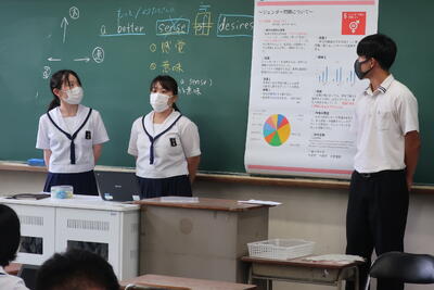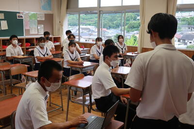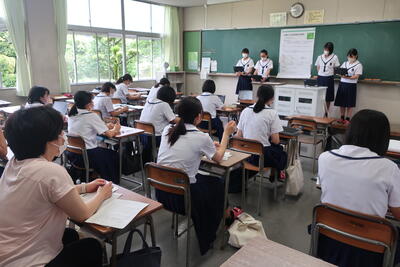 この配信を家庭で視聴した生徒もいたと思います。内容だけでなく、話すスピードや目線の配り方など、発表者として大切な「伝え方」を学び取ってくれていたら嬉しいです。