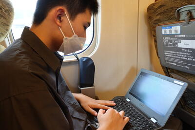 新幹線内でも研究発表に活かせる文献がないか探す様子が見られ、代表生徒の参加にかける意気込みが感じられました。