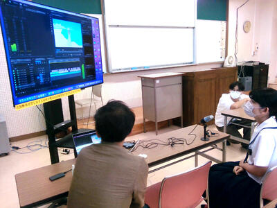8月8日(月)11:00から本校視聴覚室で、3年生総探の研究班(研究テーマ:「海洋ごみ削減のために」)の二人がナレーションの録音を行いました。