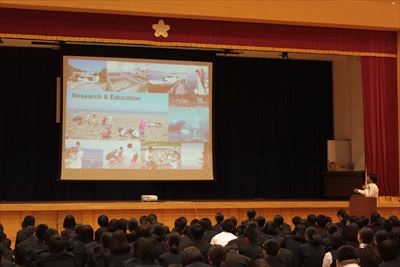 最後の質疑応答の時間には「スキューバダイビングで調べる時間はどれくらいか」「大学では英語の講義ばかりなのか」などの質問が出ました。