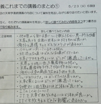 5月23日(火)のASⅠで、今までの天草学連続講義のまとめを行いました。