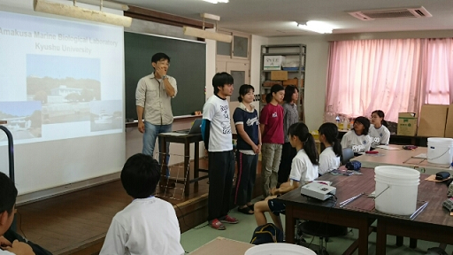 天草の沿岸が特殊な地形であり生態系の分布も多種多様であることや、天草の海とインドネシアの海を実際に映した動画を見ながら温帯と熱帯の特徴について教えていただきました。