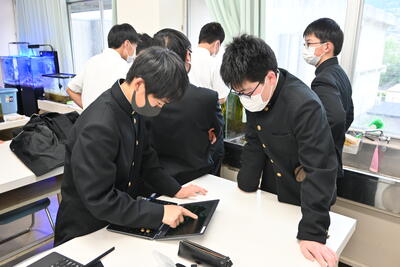 新入部員を迎えた2,3年生は早速研究活動について、1年生に指導していました。