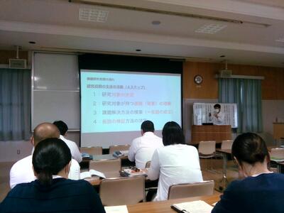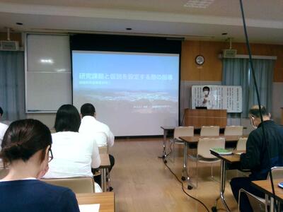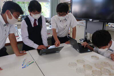 本日は年間計画と各グループの進捗状況を確認しました。年間計画の確認では、7月12日(火)に行われる発表会に向けて、班員と協力してポスターを作成することや2学期の内容について課題研究アドバイザーが話をしました。また、担当者が各グループの研究進捗状況を確認し、ディスカッションをしました。