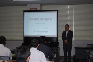 5月12日(金)に科学技術振興機構(JST)のSSH新規校訪問が行われました。鈴木主任調査員と芥田事務参事にお越しいただき、全職員向けにSSHの目的や留意点についてご講話いただきました。