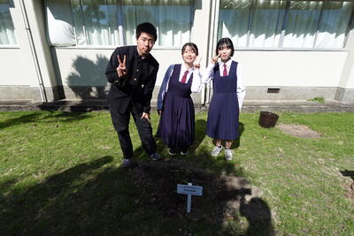 植樹はサミットに参加した生徒たちが行い、校長先生も共に行いました。