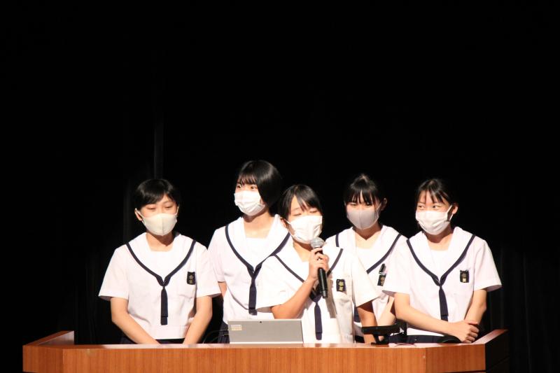 密を避けるために、2・3年生はホールで参加し、体育館で視聴する1年生と外部の方々へはオンラインで参加するといった形式で行いました。