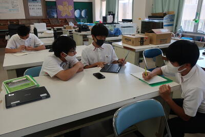 CBT形式(Computer Base Test)で90分間(教科書等の持ち込み可) で行われるテストに、全員が集中して取り組んでいました。