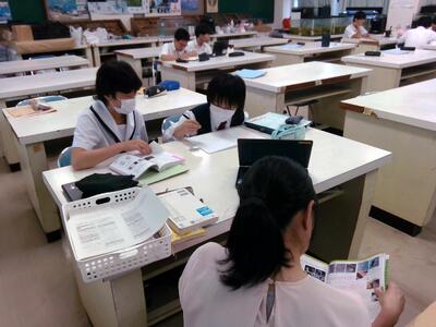 地学室を覗くと「科学の甲子園」チームが練習をしていました。