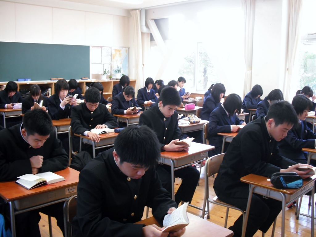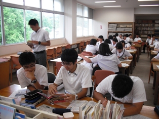 天草高校の図書館が活気付くのは、朝課外の後。朝の読書の時間前に来館する生徒でにぎやかです。