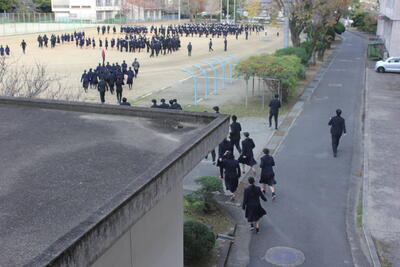 生徒たちは、放送を注意深く聞き、冷静に行動をしていました。